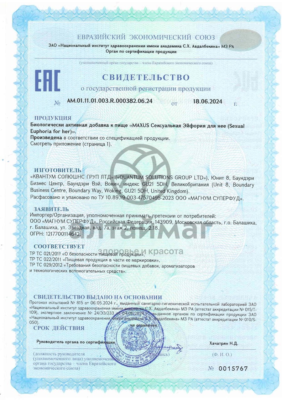 - Купите Maxus Sexual Euphoria для нее 60 капсул в Санкт-Петербурге по доступной цене 949 ₽ с доставкой на дом или заберите Ваш заказ в Санкт-Петербурге из ближайшего пункта выдачи, сделав заказ на AltaiMag.ru.