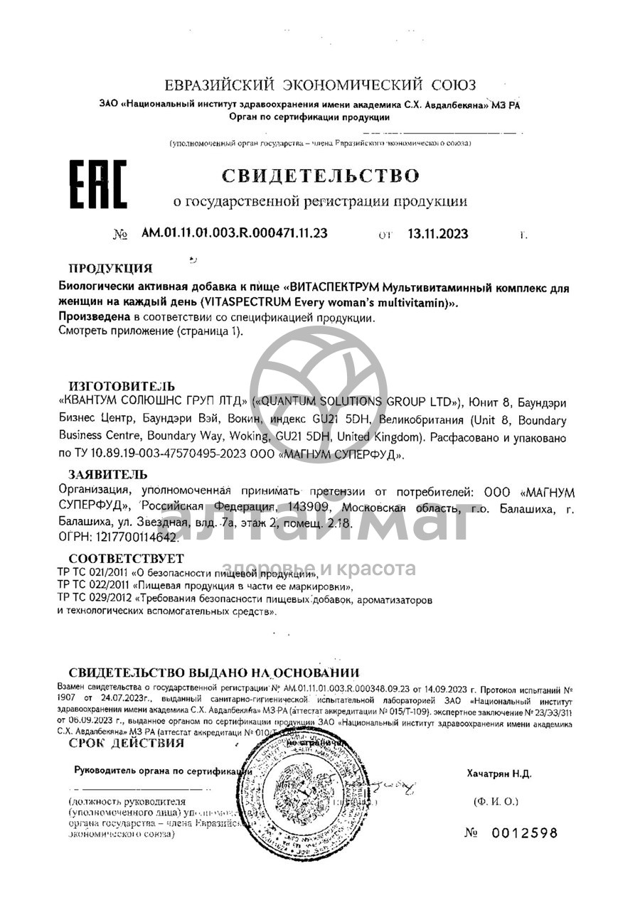 - Купите Витамины для женщин VitaSpectrum 60 таблеток в Санкт-Петербурге по доступной цене 785 ₽ с доставкой на дом или заберите Ваш заказ в Санкт-Петербурге из ближайшего пункта выдачи, сделав заказ на AltaiMag.ru.